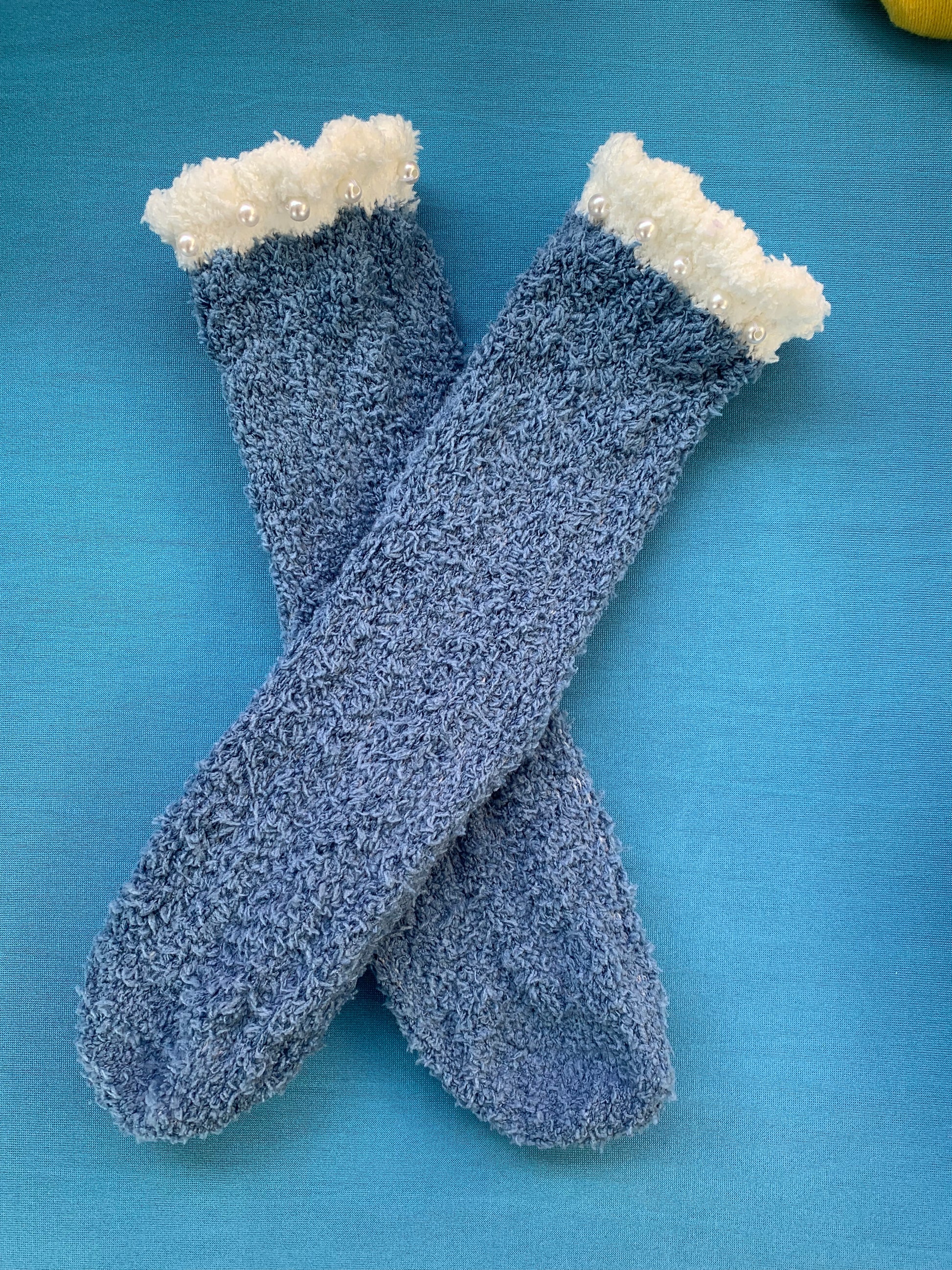 Fuzzy warm pearl socksIndulge in the warmth and style of our Fuzzy Warm Pearl Hand Sewn Women’s Socks. Crafted with a soft and cozy material, these socks will keep your feet warm and comfortable. The hand-sewn design adds a touch of elegance, making them perfect for any occasion. Stay cozy and chic with our Fuzzy Warm Pearl Socks.